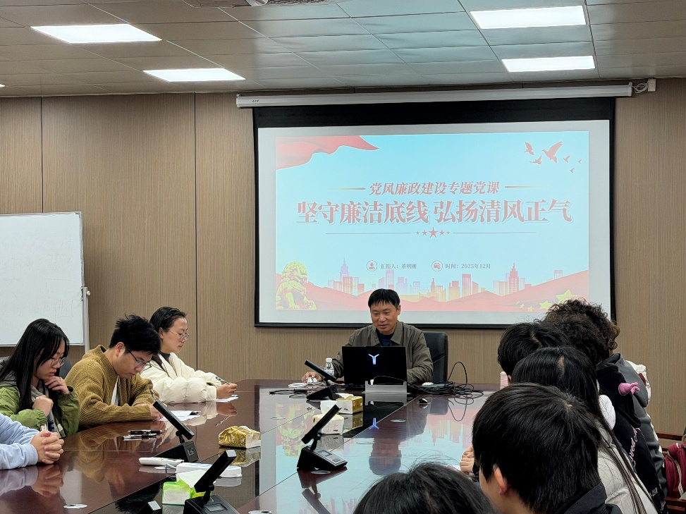 为切实增强本科生党员纪律规矩观念,2025年12月10日中午,永利集团3044am董明刚院长在07424为学院本科生第一党支部全体党员讲授了一堂深刻生动的廉政专题党课。